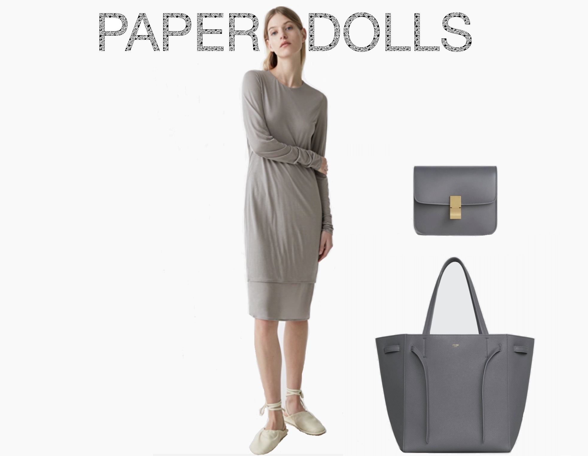 There’s no way you can go wrong with this COS Double-layer dress and classic espadrilles. Accessorize either with the CELINE Teen Classic Bag in calfskin or small CELINE Cabas Phantom in soft- grained calfskin. Both in light charcoal.